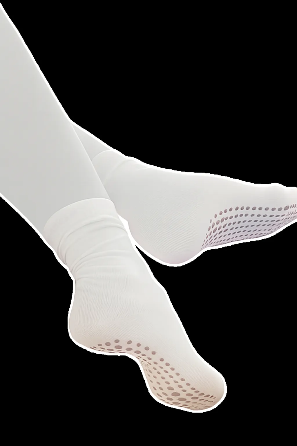 Komfortable, kvalitets grip-sokker i 100 % bomull, som gir en myk, pustende, allergivennlig og behagelig opplevelse for føttene. Det tynne stoffet gir nærmest en barfotfølelse. Sokkene føles lette mot huden, strammer ikke, sklir heller ikke ned under trening. Den sklisikre undersiden gir et godt feste på glatte underlag. Grip-sokkene passer til trening som reformer pilates, yoga, pilates, treningssenter eller til hjemmebruk.